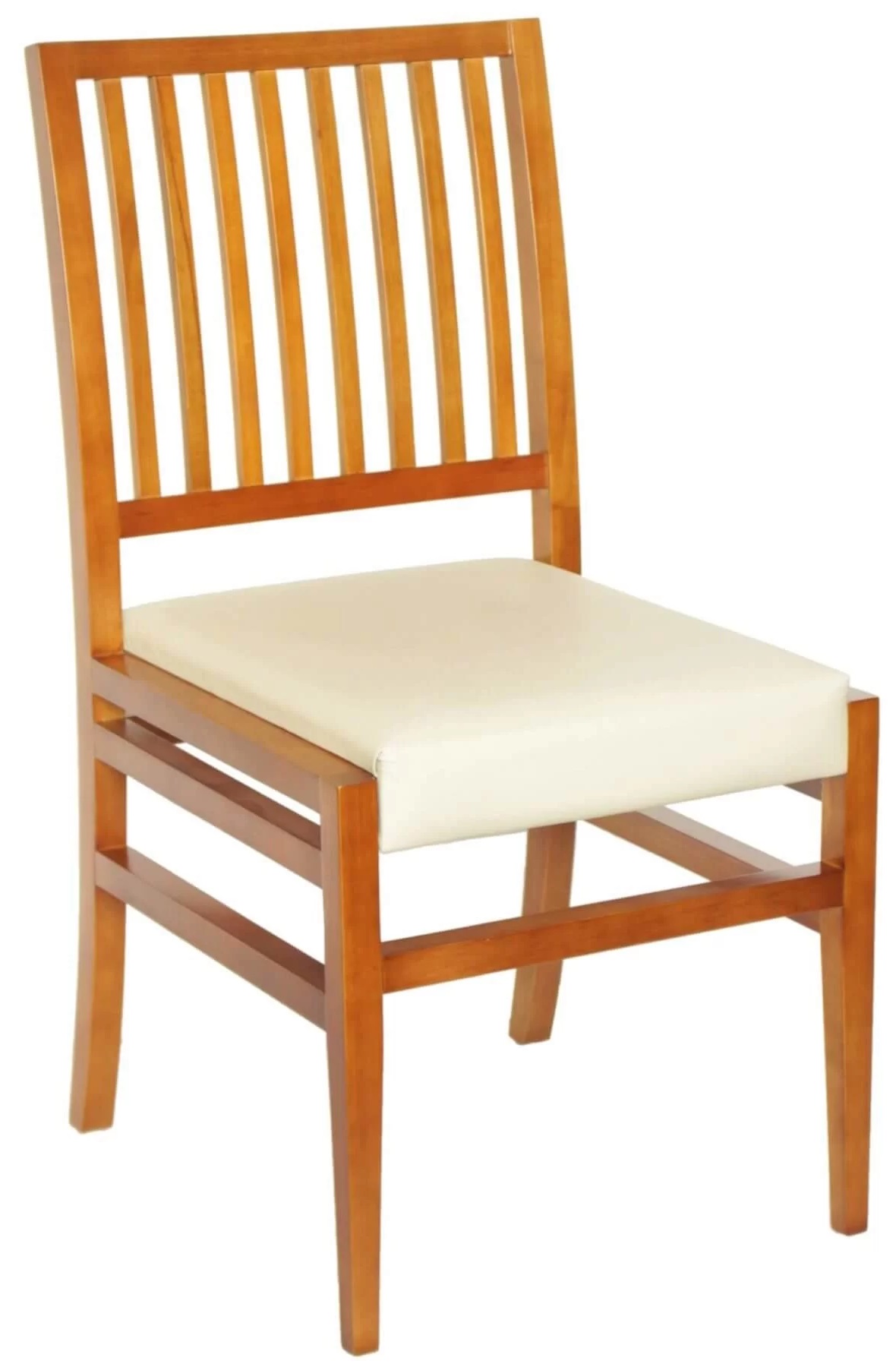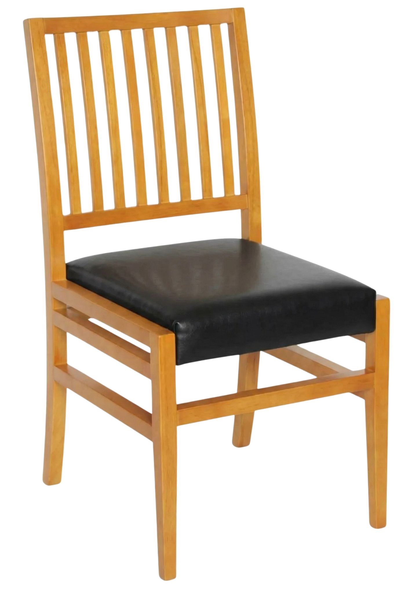 Modelo da Linha Magna com estrutura em madeira maciça, encosto com ripas verticais e assento estofado easy-clean. Une resistência profissional, visual limpo e manutenção simples, sendo ideal para restaurantes, churrascarias e ambientes comerciais de uso intenso.