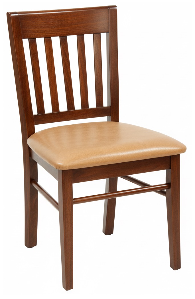 * Madeira Maciça Certificada de alta qualidade liberada pelo IBAMA. * Verniz PU (Tripla Camada de cobertura). * Assento Madeirado ou Estofado (Espuma D28); Revestimento a escolher. * Sapatas de Nylon.