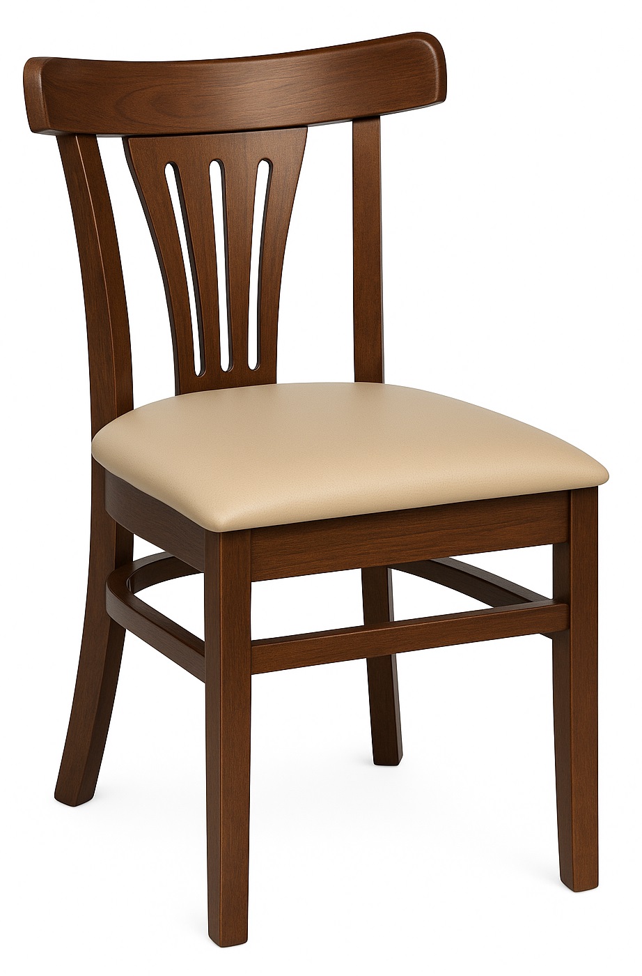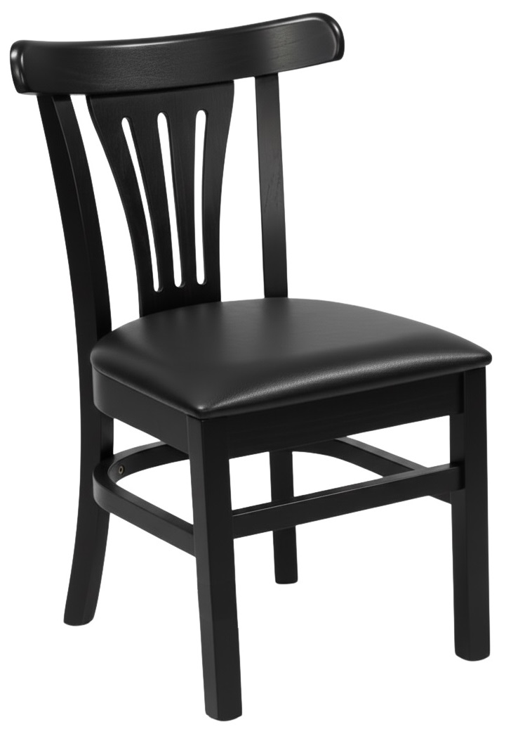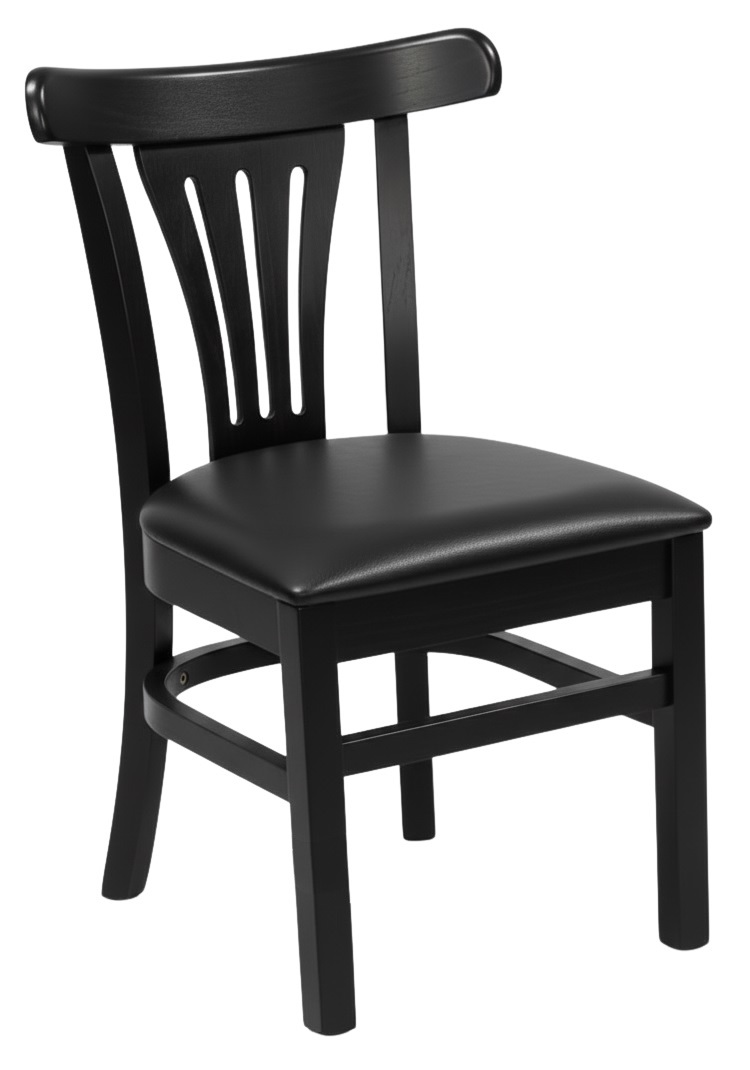 * Madeira Maciça Certificada de alta qualidade liberada pelo IBAMA e Multilaminados. * Verniz PU (Tripla Camada de cobertura). * Assento Madeirado ou Estofado (Espuma D28); Revestimento a escolher. * Sapatas de Nylon.