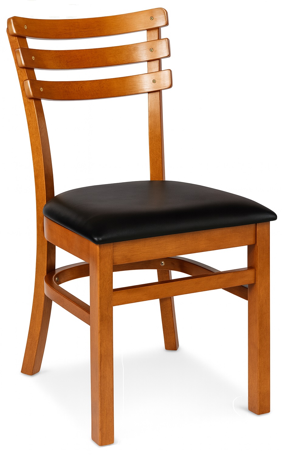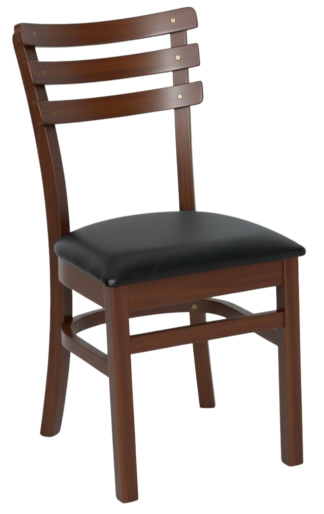 Clássico Pizarro com encosto de 3 ripas laminadas. Mantém as mesmas medidas e estrutura da Rachel, trazendo um aspecto mais rústico, oferecendo conforto firme, resistência profissional e manutenção simples.
