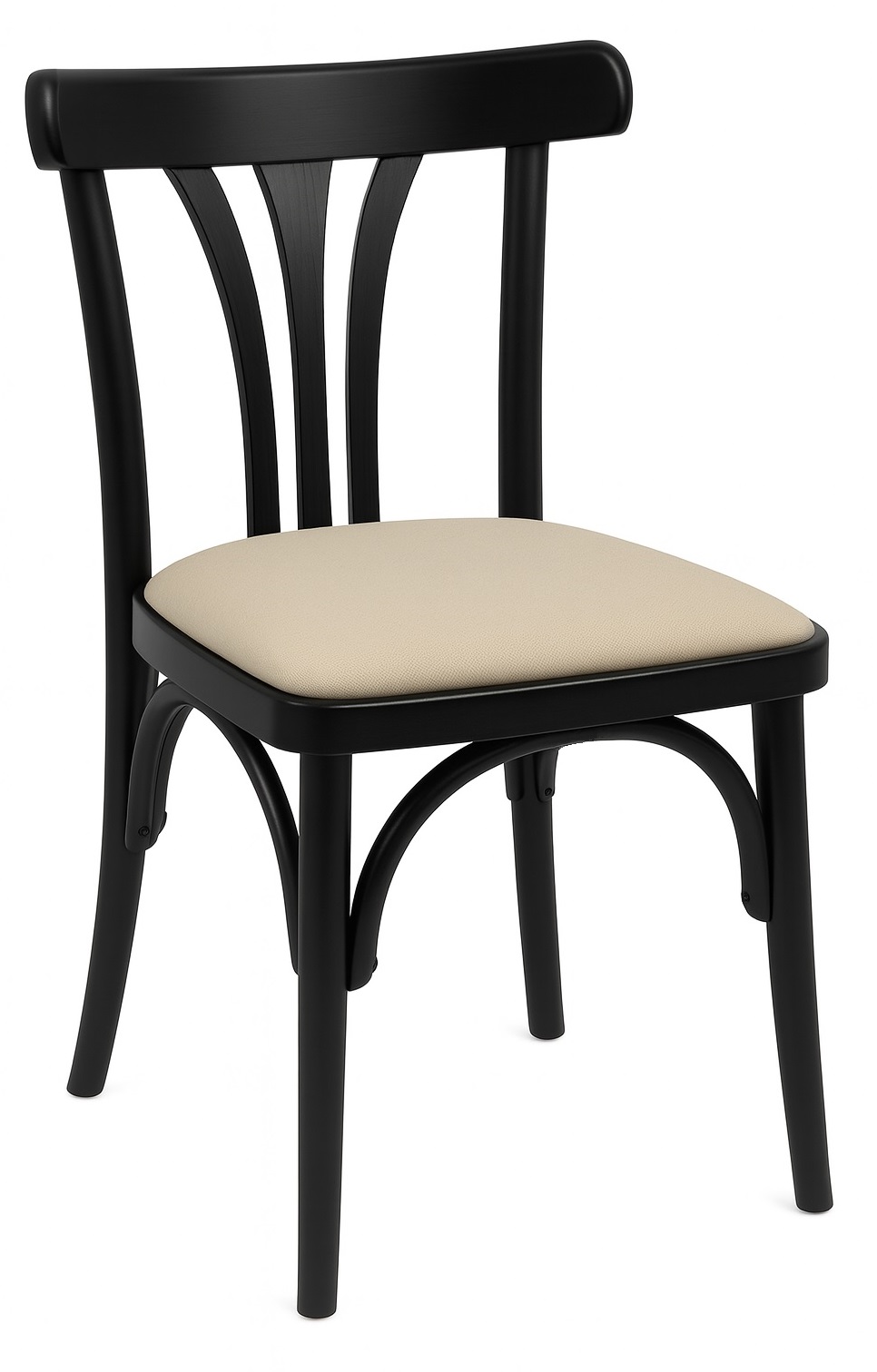 Estrutura profissional em madeira maciça com curvas bentwood, encosto de 3 ripas verticais e assento estofado easy-clean. Resistente para uso intenso de salão, com acabamento de fácil limpeza e excelente custo-benefício.